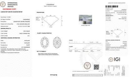 2.90 Carat Oval Cut IGI Certified Lab Grown Fancy Pink Diamond, VS1 Clarity – Sale