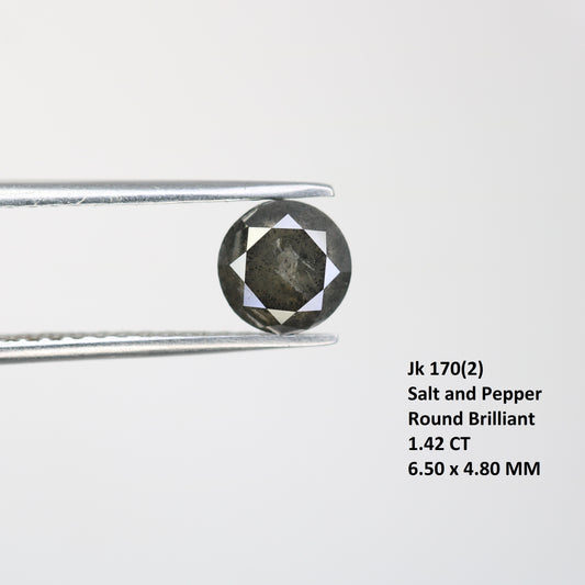 1.47 Carat Natural Salt And Pepper Round Brilliant Cut Diamond For Wedding Ring