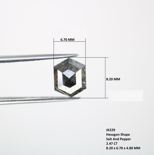 2.47 CT Salt And Pepper Elongated Hexagon Shape Diamond For Engagement Ring