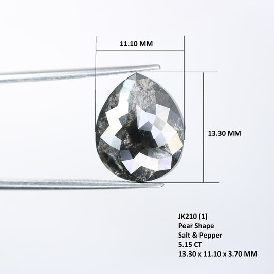 5.15 CT 13.30 MM Pear Shape Salt And Pepper Diamond For Engagement Ring