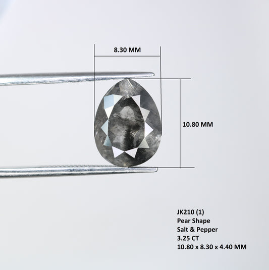 3.25 CT 10.80 MM Salt And Pepper Pear Shape Diamond For Engagement Ring