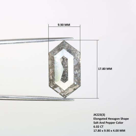6.02 CT Elongated Hexagon Shape Salt And Pepper Diamond For Engagement Ring