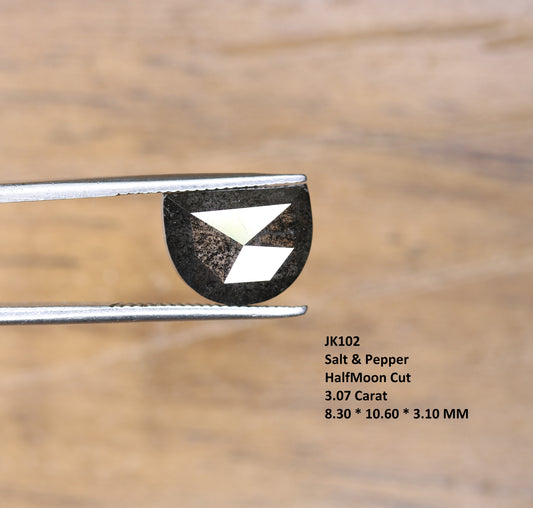 3.07 CT 8.30 MM Salt and Pepper Half Moon Shape Diamond For Engagement Ring | Pendant | Bracelet