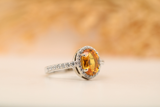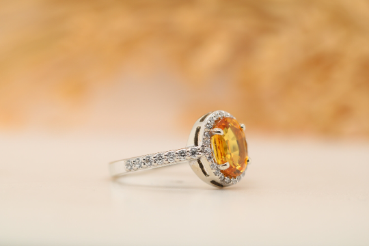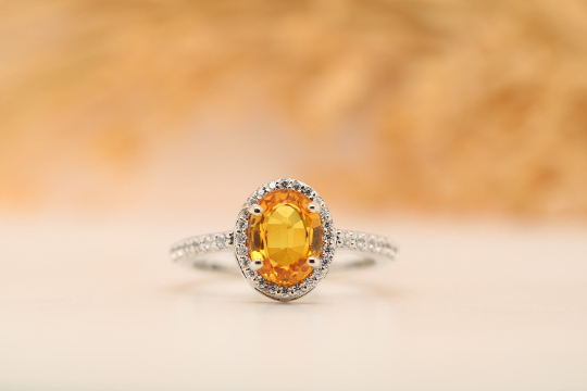 Illuminate Your Style with a Fancy Yellow Sapphire 9K White Gold Oval Shape Gemstone Ring