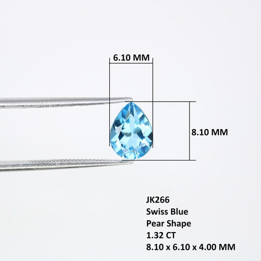 1.32 CT Natural Swiss Blue 8.10 x 6.10 MM Pear Stone For Engagement Ring
