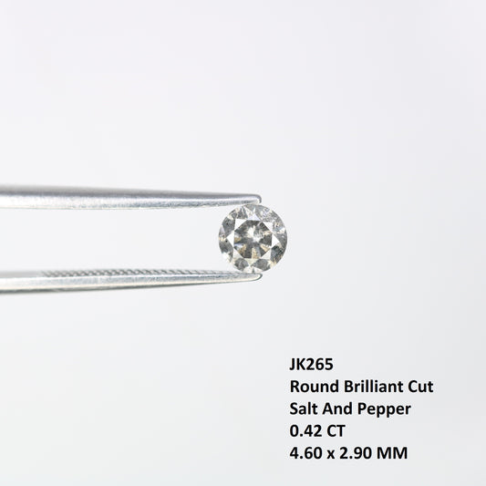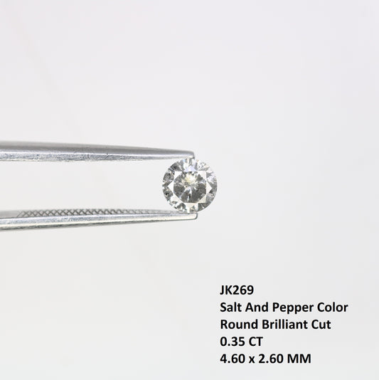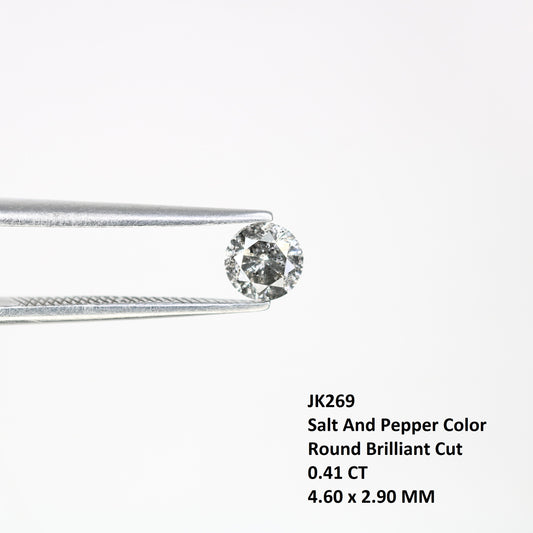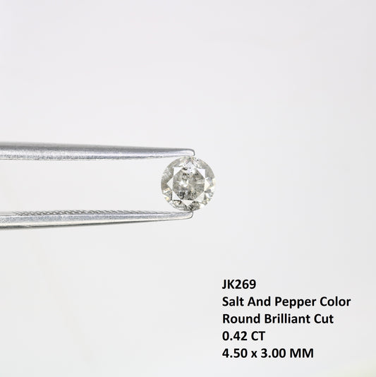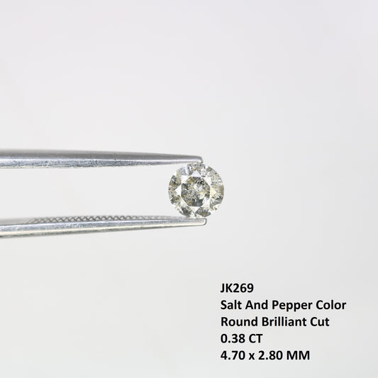 0.42 CT Salt and Pepper Round Brilliant Cut Natural Diamond for Engagement Ring and Custom Artisan Jewelry
