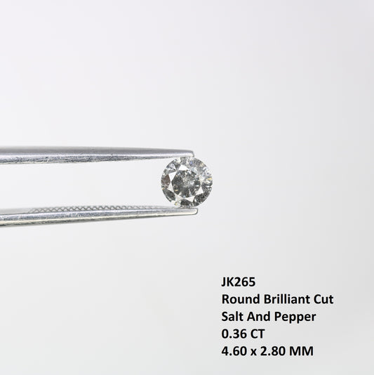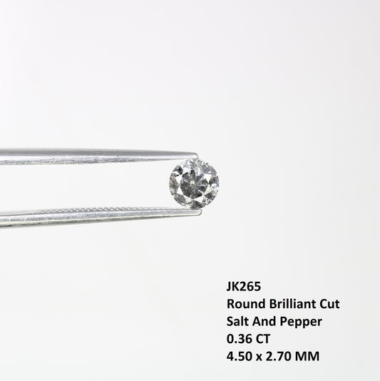 Unique 0.36 CT Salt & Pepper Round Brilliant Cut Diamond | Perfect for Engagement Rings
