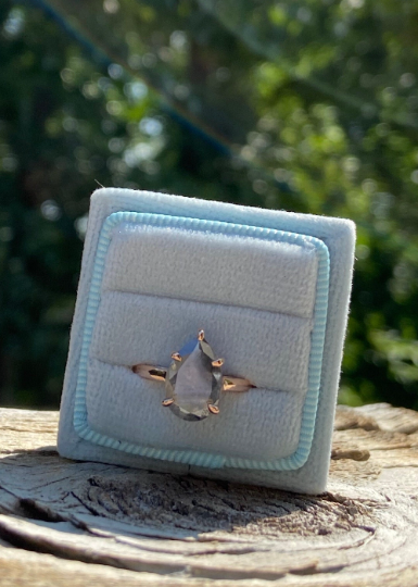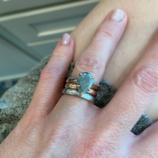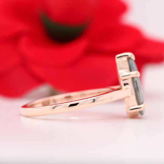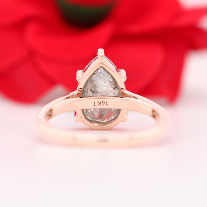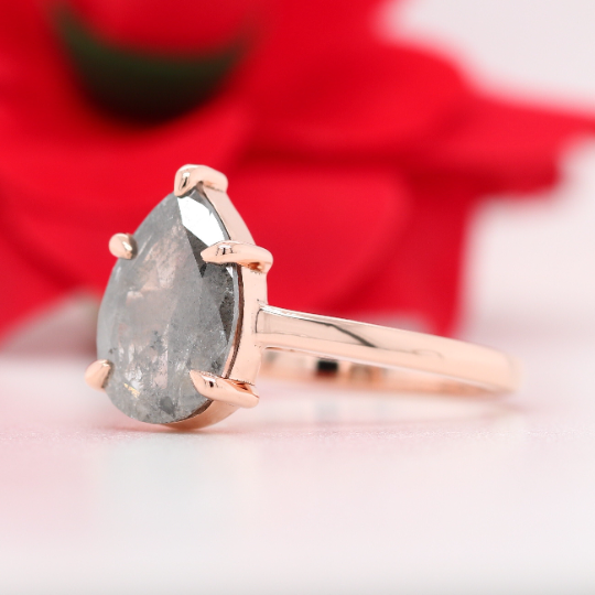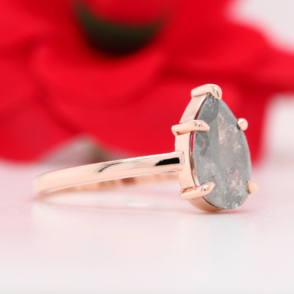 Natural Grey Galaxy Pear Cut Salt and Pepper Claw Prong Set Diamond Ring