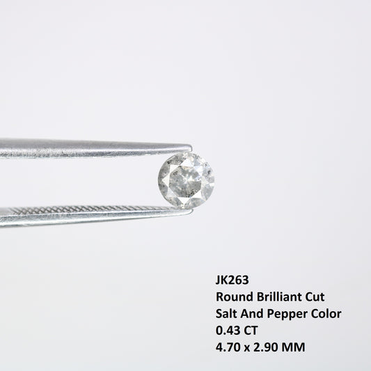 0.43 CT Loose Salt and Pepper Round Brilliant Cut Diamond for Wedding Ring and Custom Bridal Jewelry