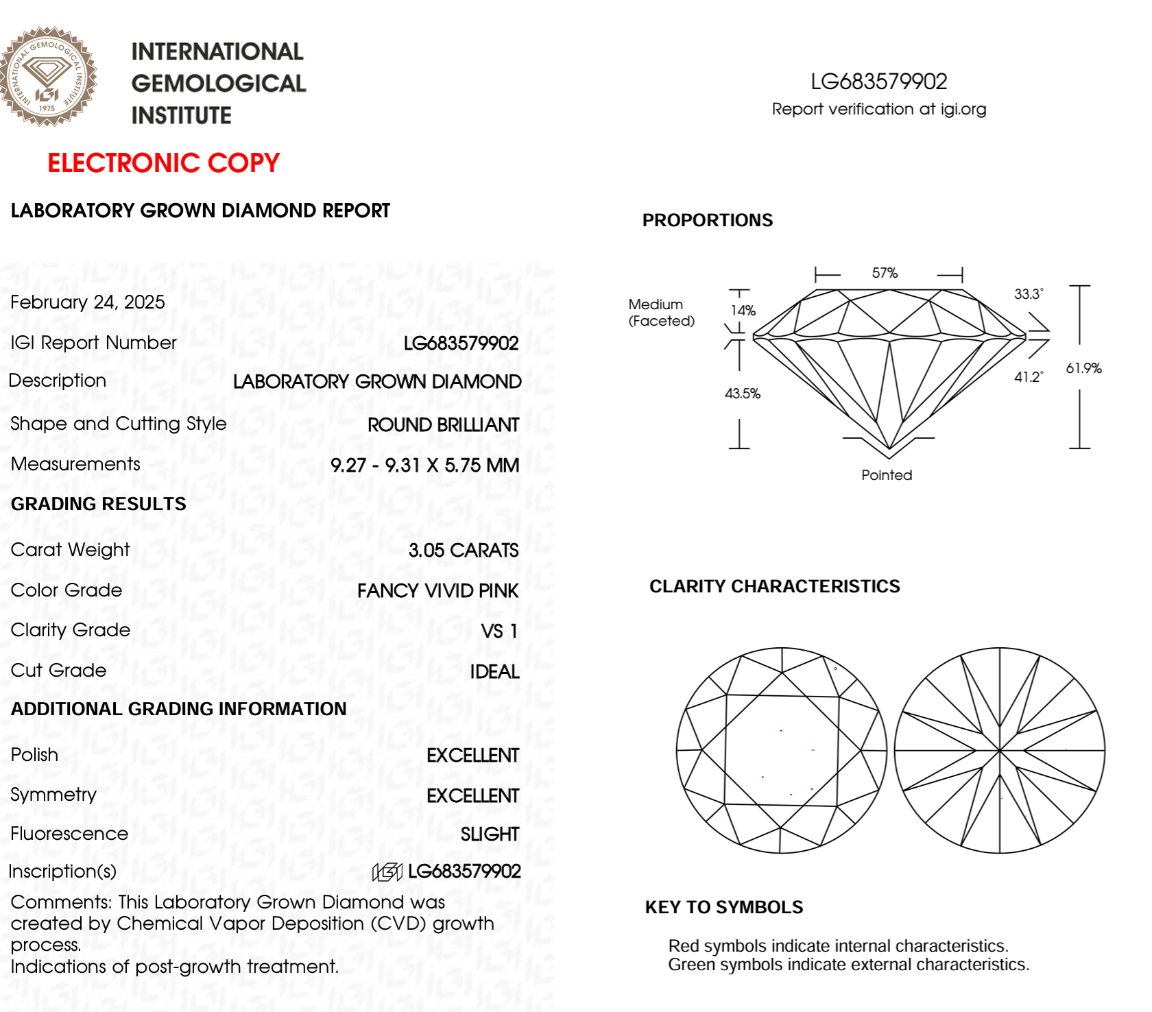 3.05ct Round Fancy Pink Lab Diamond IGI VS1 Sustainable Gem