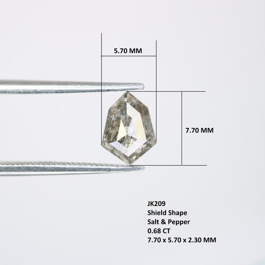 0.68 Carat Salt and Pepper Shield Shaped Natural Diamond for Wedding Ring - Unique Gemstone for Custom Bridal Jewelry Designs