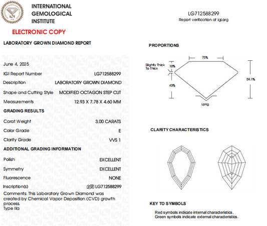 3 Carat Octagon Step Cut Diamond | E Color VVS2 Clarity | Certified Diamond
