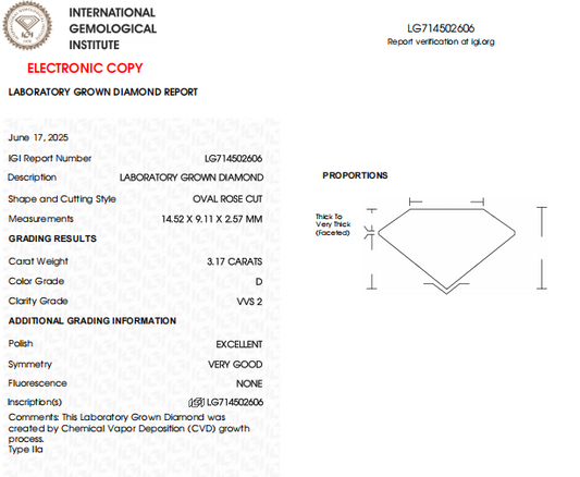 3.17 CT D Color VVS2 Clarity Oval Rose Cut Lab Created Diamond For Best Diamond Gift