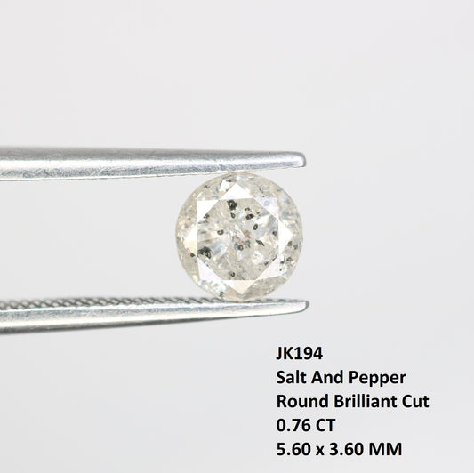 0.76 Carat Salt And Pepper Loose Round Brilliant Cut Diamond For Engagement Ring