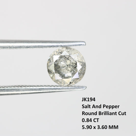 0.84 Carat Salt And Pepper Loose Round Brilliant Cut Diamond For Wedding Ring
