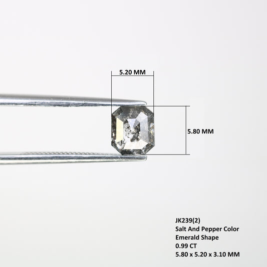 0.96 CT Loose Emerald Shape Salt And Pepper Natural Diamond For Engagement Ring
