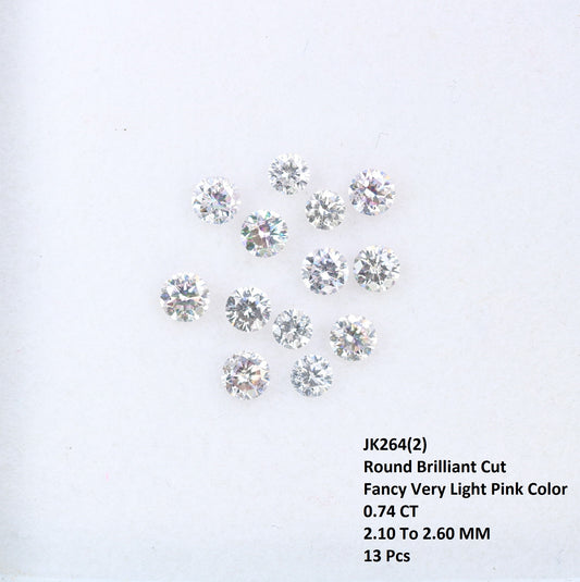 0.74 CT 2.10 To 2.60 MM Round Brilliant Cut Fancy Very Light Pink Diamond For Engagement Ring | Pendant | Bracelet |