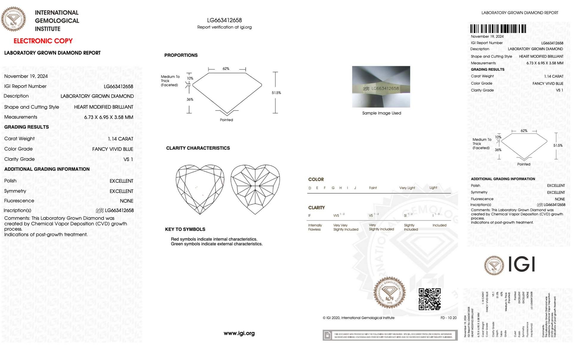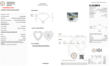 1.14 CT Heart Cut Lab Grown Diamond Blue Color | IGI Certified | Lab Created Diamond for Rings