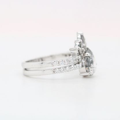18K White Gold Salt And Pepper Pear Shape 1.00 CT Diamond On Round Brilliant Band For Engagement Ring
