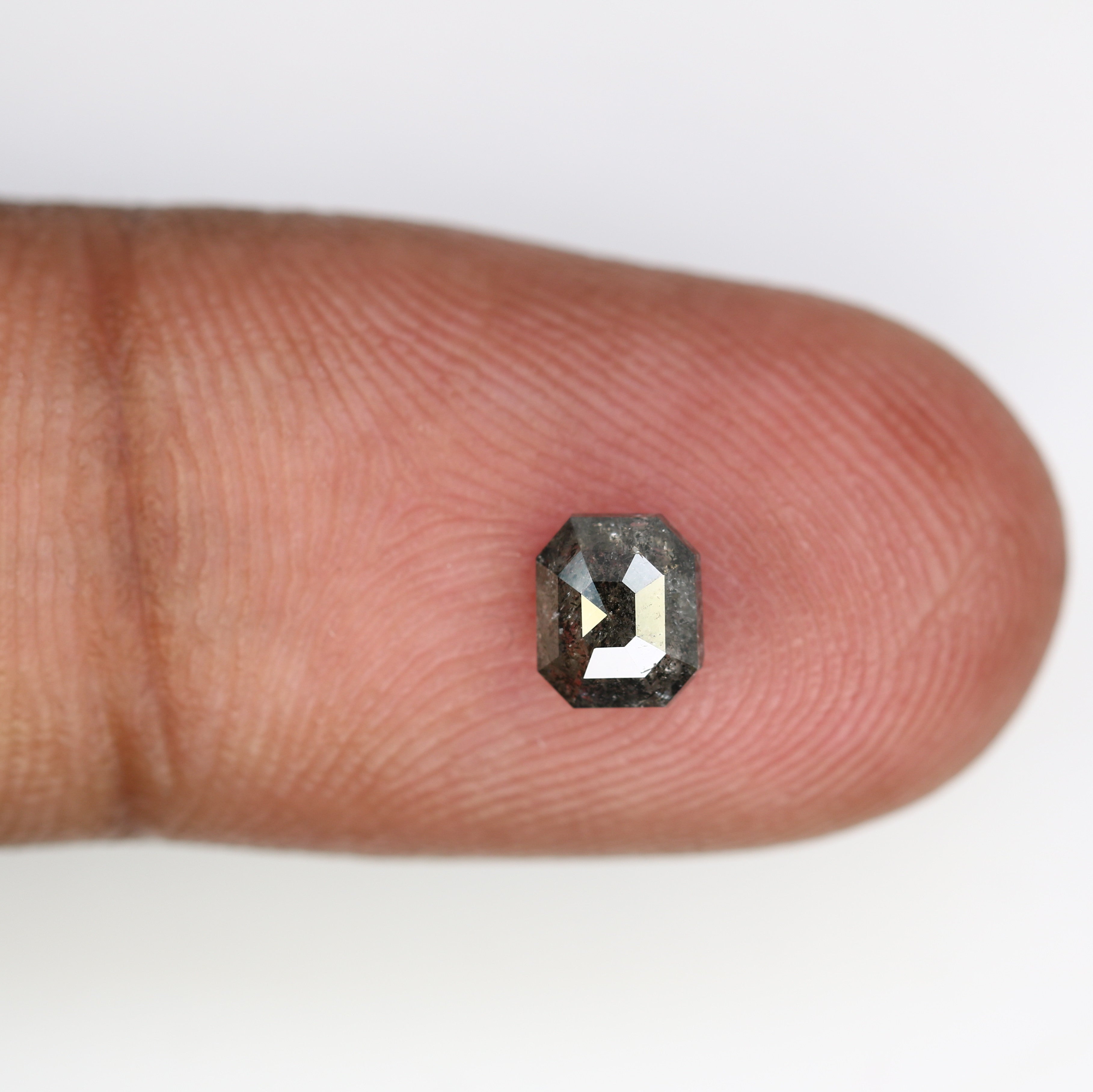 0.69 CT Emerald Shape Salt And Pepper 5.50 MM Diamond For Engagement Ring