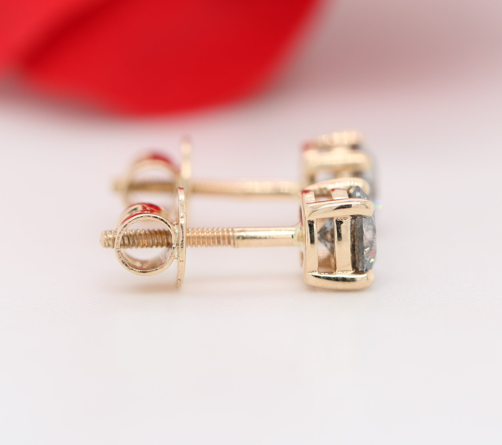 Round Natural Grey Salt And Pepper Galaxy Diamond 14K Gold Earrings for Women