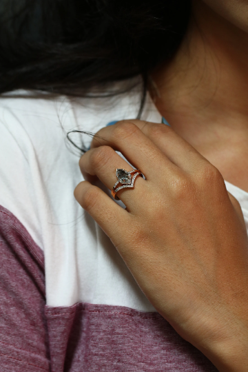 Geometric Shield Shape Salt And Pepper 14K Rose Gold Ring With Round Brilliant Diamond Band