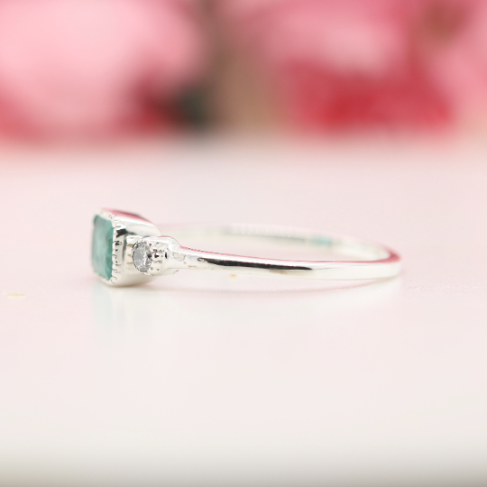 Natural Loose Emerald Shape Green Emerald Gemstone Sterling Silver Wedding Ring | Engagement Ring | Gift For Her | Gift For Girlfriend | Anniversary Gift