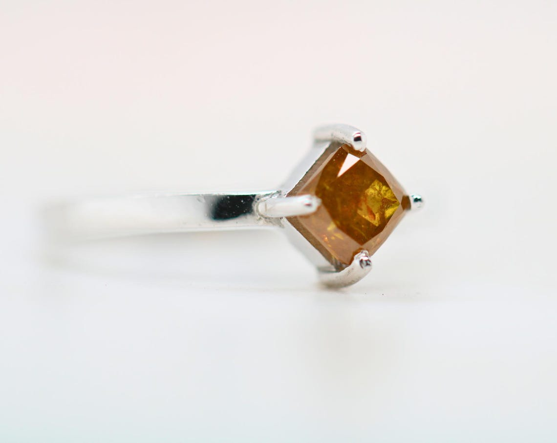 Vintage Art Deco Diamond Ring | Yellow Gold & Silver Antique Square Gemstone Ring | Rustic Organic Natural Diamond Ring