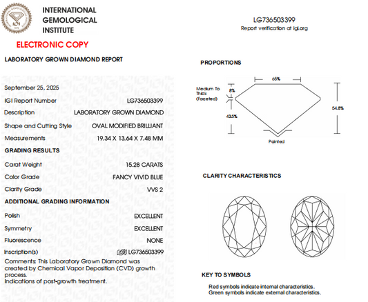 15.28 Carat VVS2 Clarity Blue Color Oval Shape Lab Grown Diamond | IGI Certified