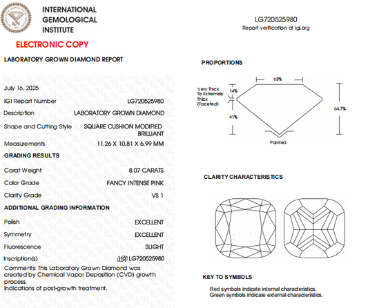 8 CT Pink Color VS1 Clarity Radiant Cut Lab Made Diamond For Custom Jewelry | IGI Certified Diamond