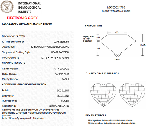 8.11 CT Intense Pink Heart Shape Lab Created Diamonds For Custom Pendent | IGI Certified