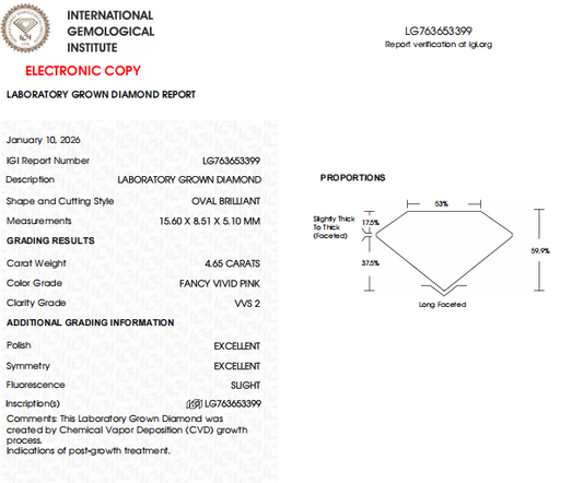 23.37 Carat Intense Pink Oval Shape Lab Grown Diamond | IGI Certified