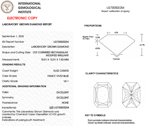 15 CT Vivid Blue Radiant Cut Lab Grown Diamond For Birthday Gift | IGI Certified