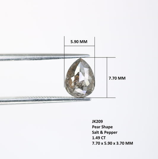 1.18 CT Pear Shape Salt And Pepper Rustic Diamond For Engagement Ring | Gift For Wife | Gift For Girl Friend