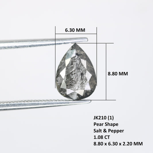 1.08 CT 8.80 MM Salt And Pepper Pear Shape Diamond For Engagement Ring