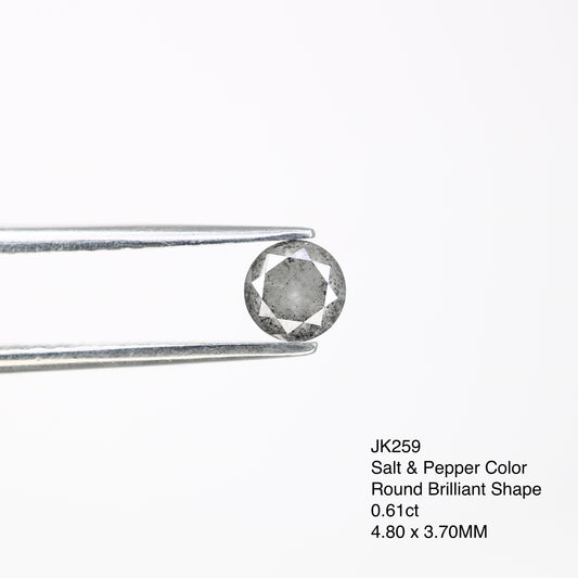 0.61 Carat 4.8MM Loose Salt and Pepper Round Brilliant Cut Diamond: Natural Grey Diamond for Elegant Engagement Rings