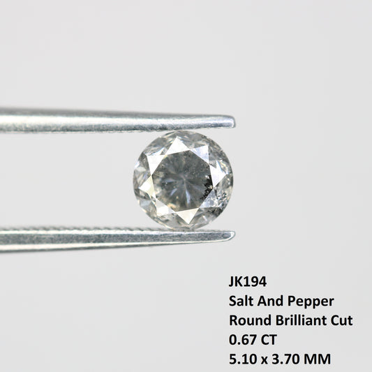 0.67 Carat Salt and Pepper Round Brilliant Cut Loose Diamond for Wedding Ring - Unique Gemstone for Custom Bridal Jewelry Designs