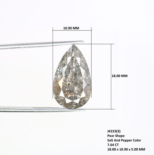 7.64 CT Salt And Pepper Pear Shape Diamond For Engagement Ring