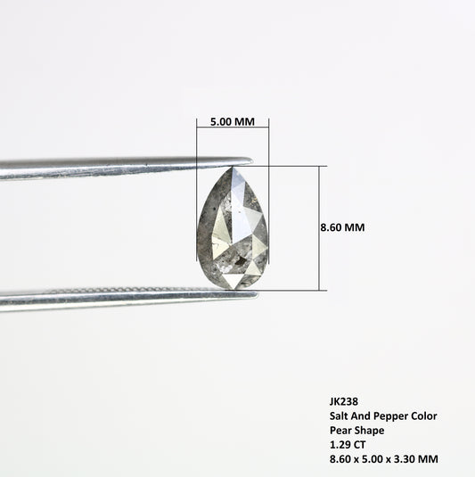 1.29 CT 8.60 MM Salt And Pepper Pear Shaped Diamond For Wedding Ring