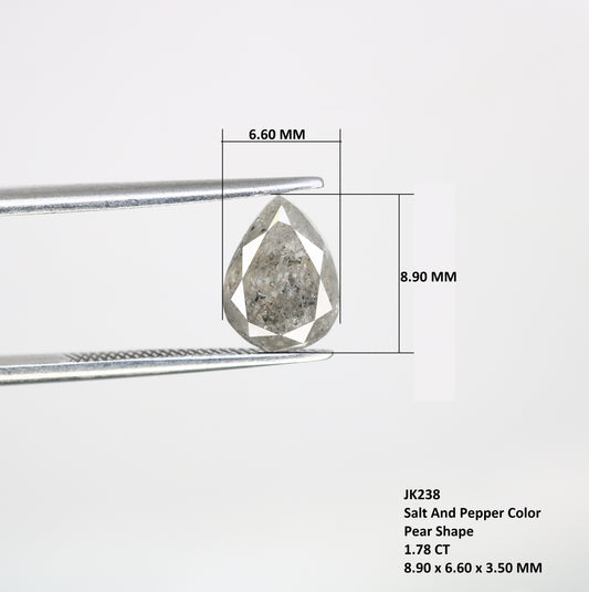1.78 CT Natural Pear Shape 8.90 MM Salt And Pepper Diamond For Engagement Ring