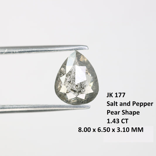 1.43 CT Natural Salt And Pepper Pear Cut Loose Diamond For Engagement Ring