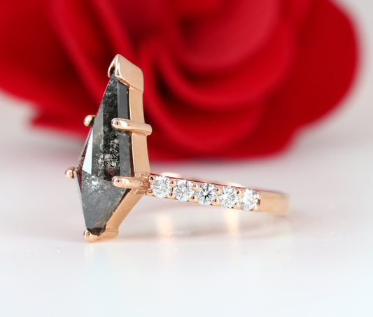Natural Salt And Pepper 18K Rose Gold Kite Bezel Set Engagement Ring