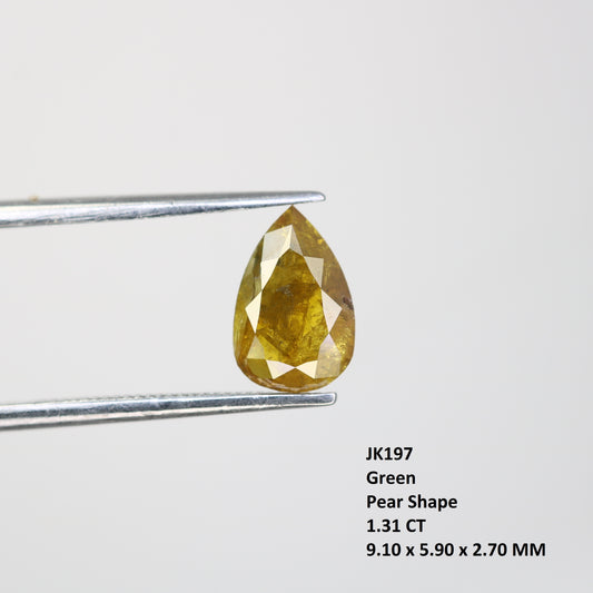1.31 Carat Natural Green Rustic Pear Shape Diamond For Wedding Ring