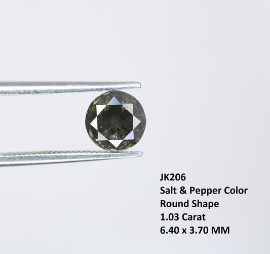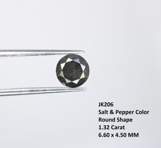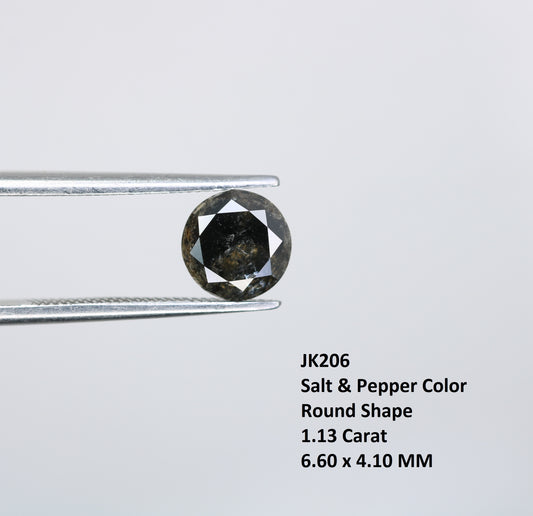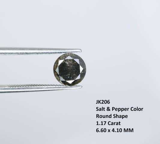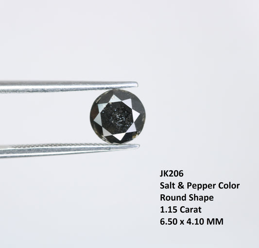 1.29 Carat Natural Salt And Pepper Round Brilliant Cut Diamond For Engagement Ring