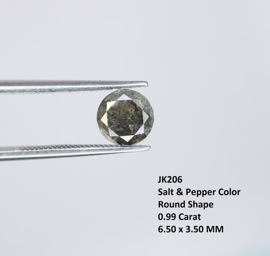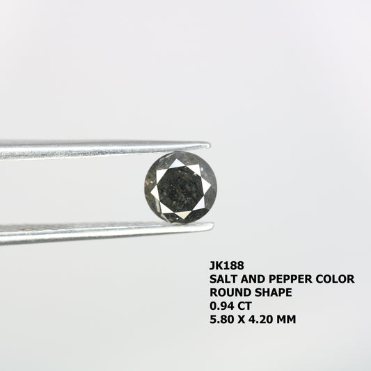 0.94 Carat Salt And Pepper Loose Round Brilliant Shape Diamond For Wedding Ring