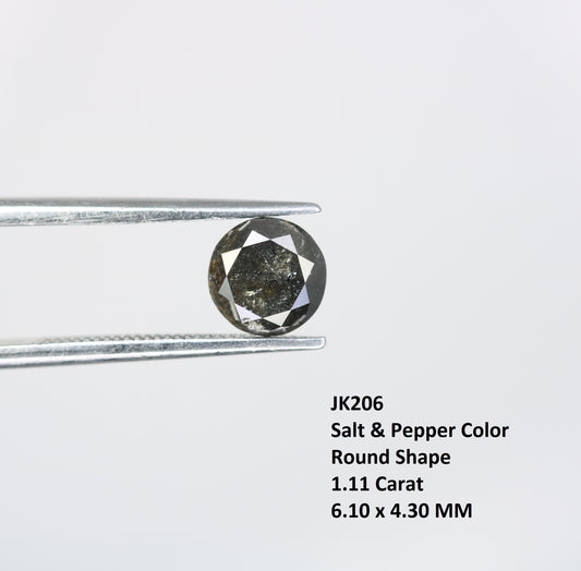 1.11 CT Salt and Pepper Round Brilliant Cut Diamond For Engagement Ring
