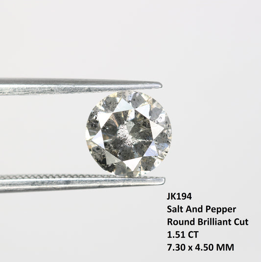 1.51 Carat Salt And Pepper Loose Round Brilliant Cut Diamond For Wedding Ring