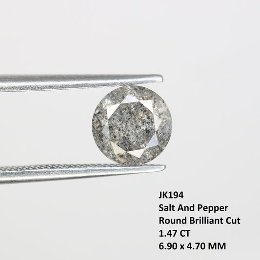 1.47 Carat Natural Salt And Pepper Round Brilliant Cut Diamond For Wedding Ring