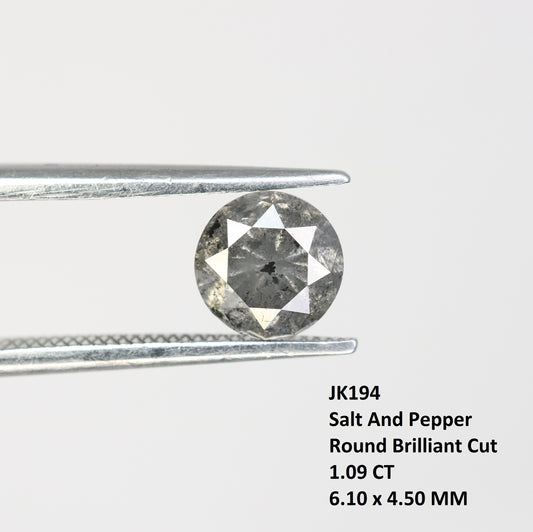 1.09 Carat Salt And Pepper Loose Round Brilliant Cut Diamond For Engagement Ring